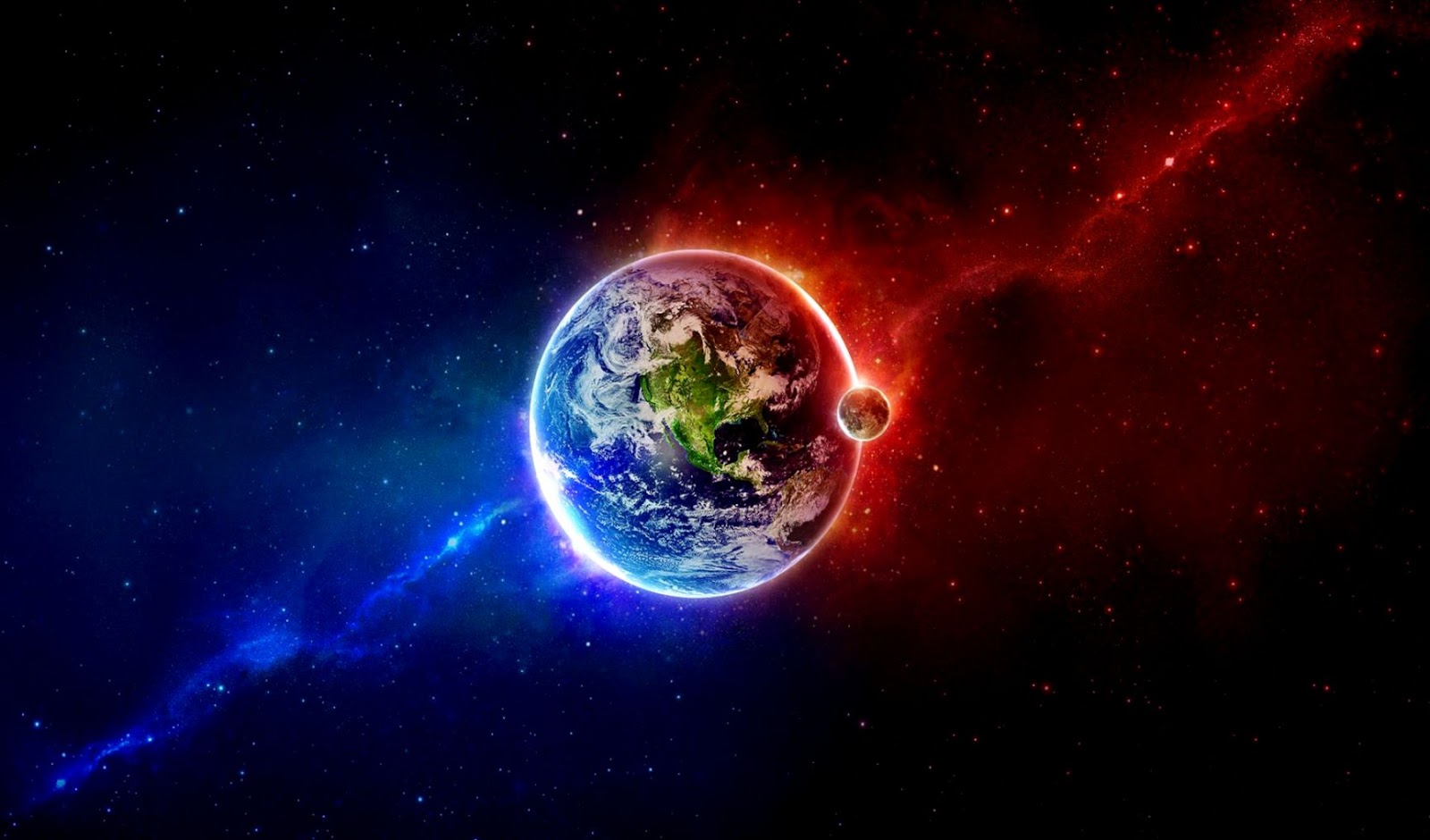 Description : Outer Space Earth Moon Red Blue HD Wallpaper » FullHDWpp Full HD